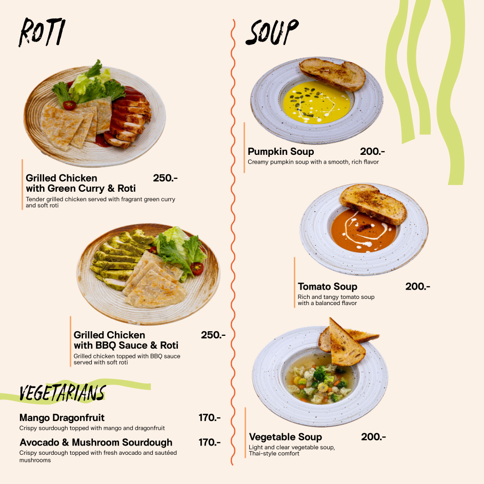 Salt Surf offers a vibrant menu that perfectly matches its stunning beachfront location in Phang Nga, Thailand. Their savory breakfasts, such as the Salty Waffle and Salty Pancake, come with fried eggs, bacon, avocado, and cheddar—a hearty start that combines comfort with coastal freshness. For something uniquely local, the roti dishes stand out: tender grilled chicken served with aromatic green curry or smoky BBQ sauce, enveloped in soft roti that beautifully balances Thai flavors with Western influence.