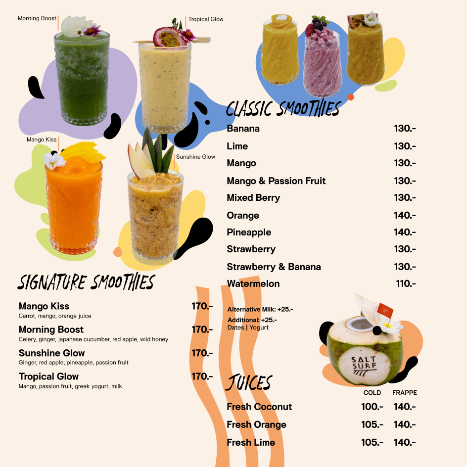 Introducing the Menu at Salt Surf (beachfront cafe & surf shop)